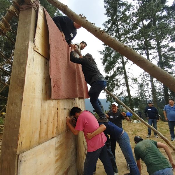 Consiste en una progresión de desafíos físicos compuestos por postes, cables, cuerdas y llantas, así como actividades físicas enfocadas al desarrollo de las habilidades personales e interpersonales de un grupo en un ambiente de cooperación, apoyo y participación. La Plaza de Desafíos Desmontable con la que contamos, es una con características de Bajo Poder, esto quiere decir que es una Plaza ideal para manejar Trabajo en Equipo e integración, además de desarrollar sistemas de compromiso grupal, comunicación, combinación de habilidades, cumplimiento de metas y habilidades para dirigir grupos, entre otros valores, sin poner en riesgo la seguridad de los participantes. Contamos con los elementos conocidos como: La Telaraña, El Dedo del Gigante, Todos a Bordo, El Caballete, entre otros.